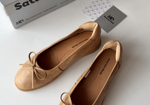 今天帮大家挑了一款连锁品牌「Saturday Mode星期六一脚蹬头层牛皮镂空单鞋」!