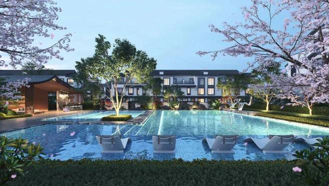 除此之外,小区内还设置了度假泳池、婴幼儿活动中心等配套设施,打造独门独院静谧生活的同时,也提供了邻里社交、娱乐的场所。