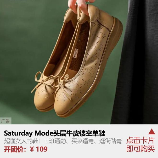 今天帮大家挑了一款连锁品牌「Saturday Mode星期六一脚蹬头层牛皮镂空单鞋」!